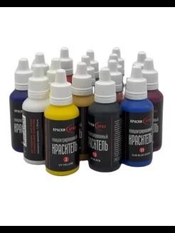 • 16 пластиковых флаконов с колеровочными пастами разных цветов
